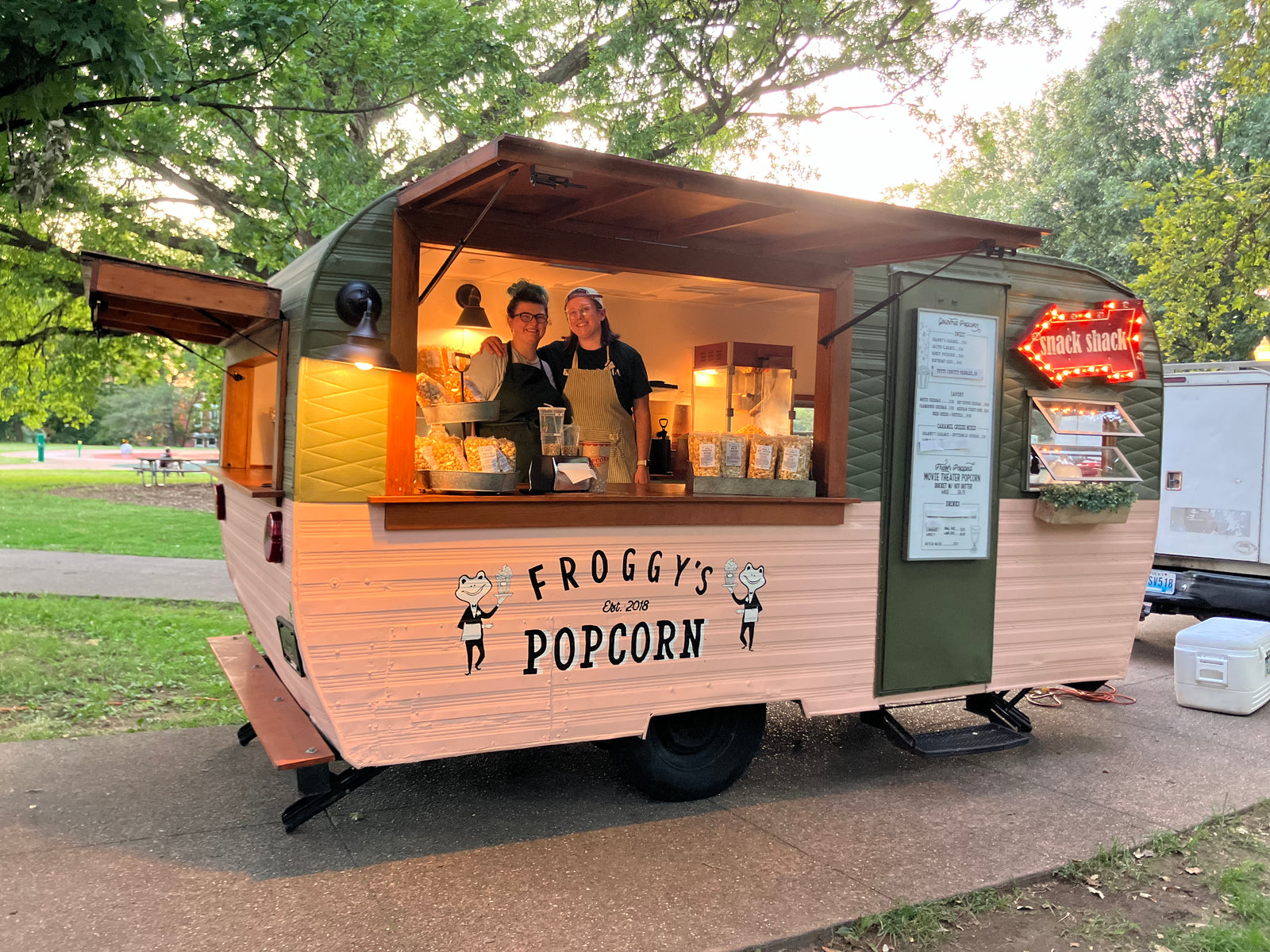 Snack Shack Schedule & MenuFroggy’s Popcorn was founded in 2018 by Melaine Fischer, aka Popcorn Mel, from a family recipe for Sweet and Spicy popcorn. Fueled by creativity and a passion for popping, Popcorn Mel has created dozens of seasonal and popular popcorn recipes. Each bag is filled with our non-gmo popcorn and dressed with the finest ingredients we can find.